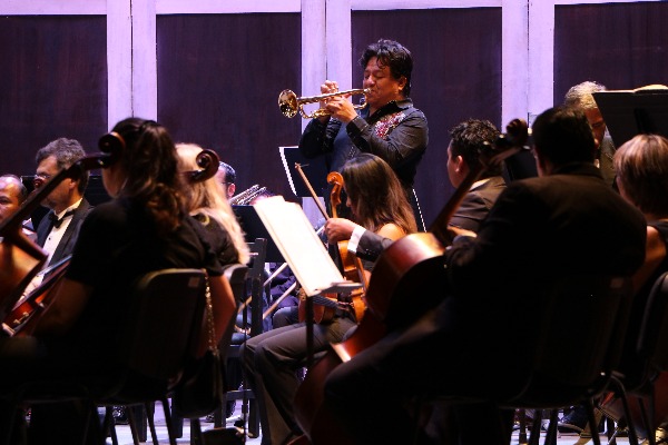 Luego arribó al escenario el músico oaxaqueño Faustino Díaz, quien con una impecable ejecución del trombón, eufonio y trompeta, respaldada como egresado del Conservatorio Nacional de Música en México, del Rotterdam Conservatorium, de Holanda, y de la Alta Escuela de Música de Lausana, además de ser parte de una familia con más de 100 años en la música, inició su interpretación con una obra escrita por Felix Alexandre Guilmant (quien fue el encargado de estrenar el gran órgano de la Catedral de Notre Dame) que le fue comisionada por el Conservatorio de París por los años 1900 para un examen de grado: "Pieza para Trombón" (Morceau Symphonique Op.88).
