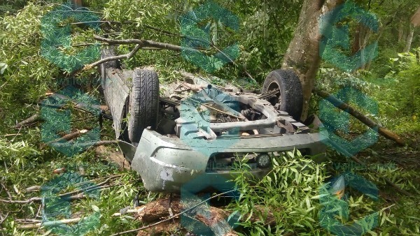 El auto se volcó y golpeó a su paso varios árboles, quedando finalmente llantas arriba y con sus tripulantes heridos de gravedad, siendo cuatro en total, que no han sido identificados.