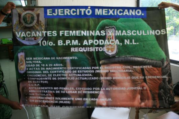 El Décimo Batallón de Policía Militar con sede en Apodaca, Nuevo León está ofertando en Ciudad Valles 50 vacantes para hombres y mujeres que deseen formar parte de sus filas.