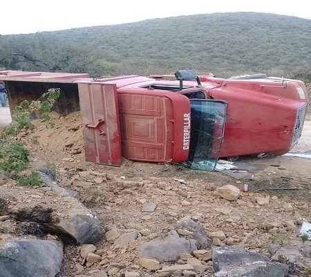 Donde se presentó la Policía Municipal transcedió que el vehículo se dirigía a la comunidad de el Soyatán a donde trasportaba material de construcción y en el momento fue cuando le fallaron los frenos y fue cuando volcó.