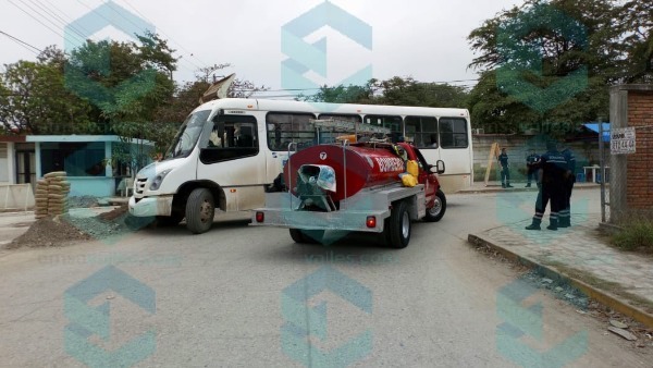Frente a la primaria Club de Leones de la colonia 18 de Marzo se registró un choque, entre el autobús urbano número 59 y la unidad de ataque rápido número 07 de Bomberos.