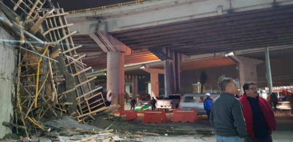 Durante el proceso constructivo en las obras del Distribuidor vial Benito Juárez, una cimbra de un cabezal (parte que va a sostener las trabes), presentó una falla en los andamios que soportan los armados de acero y el concreto hidráulico por lo que se derrumbó lesionando a dos trabajadores, mismos que fueron trasladados a un hospital para recibir atención médica.