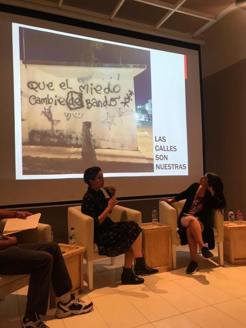 En esta charla que estuvo a cargo delas especialistas Marcela López, Diana Harris y la artista urbana Janín Garcín, se ofreció al público asistente, sus perspectivas acerca de la apropiación creativa de los espacios públicos a través de ejemplos de sus trabajos artísticos y de investigación.