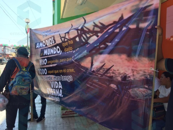 Jóvenes de la iglesia Getsemaní que se encuentra en la colonia La Diana, de esta localidad, aprovecharon la afluencia de innumerables personas al desfile de este 16 de septiembre para extender una lona con la leyenda "De tal manera amó Dios al mundo, que ha dado a su hijo unigénito, para que todo aquél que en él cree, no se pierda, más tenga vida eterna".
