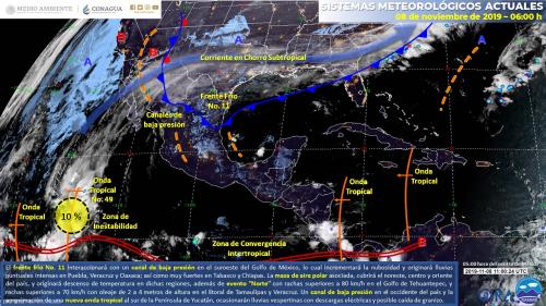 Apuntó que, de acuerdo a la última información proporcionada por el Servicio Meteorológico Nacional, esta temporada invernal se esperan 53 frentes fríos, que terminarían hasta el mes de mayo, siendo los más intensos lo que se presentarán en los meses de diciembre y enero.