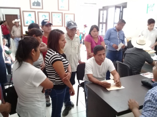 Líderes antorchistas de diferentes comunidades de Aquismón, acompañados por el dirigente municipal, Gerardo Martínez Esther, se dieron cita en el Ayuntamiento para dar seguimiento a las peticiones ya presentadas anteriormente, ante las autoridades municipales.
