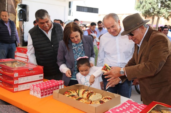 El Gobernador del Estado, Juan Manuel Carreras López, acompañado de la Presidenta de la Junta Directiva del DIF Estatal, Lorena Valle Rodríguez, celebraron el día de reyes en la comunidad de Casa Blanca, perteneciente a Escalerillas.