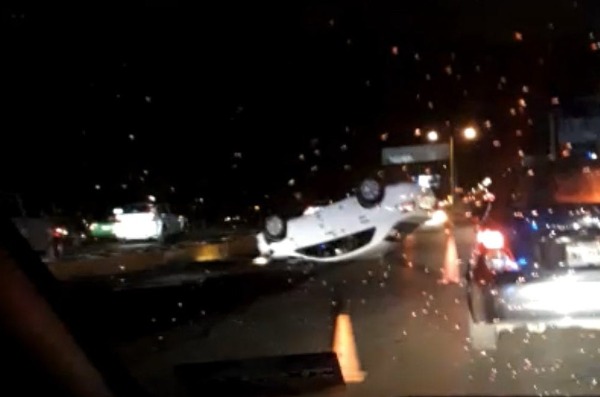 Un automóvil color blanco, de modelo reciente, chocó y se volcó frente al banco Banamex de la glorieta Juárez, donde al parecer hubo lesionados.