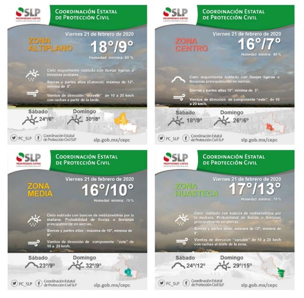 Ante el ingreso del frente frío número 40 que se desplazará sobre los estados del noreste y oriente de México e interaccionará con un canal de baja presión en el sureste del país, la Coordinación Estatal de Protección Civil (CEPC), dio a conocer que se registran bajas temperaturas con probabilidades de lluvia en San Luis Potosí.