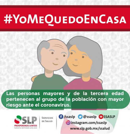 Las y los adultos mayores pertenecen al grupo de la población con mayor riesgo ante el Coronavirus por lo que hay que permanecer alerta ante los síntomas que pudieran presentar y darles la atención necesaria, si tienen fiebre superior a los 37.5 grados, tos seca, dificultad para respirar, flema, cansancio o debilidad, además de haber tenido contacto con personas procedentes de países con contagios comunitarios o algún caso positivo por Coronavirus, llamar a la línea telefónica 800 123 88 88.