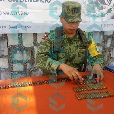 Una cantidad considerable de cartuchos fueron entregados esta mañana en el módulo de canje de armas y juguemos sin violencia 2020 implementado por el 36 Batallón de Infantería en la plaza principal de Ciudad Valles.