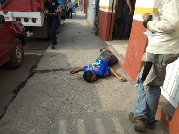 Esta tarde en calle Madero y Niños Héroes en la zona centro, un hombre identificado como Milton de la Rosa, iba saliendo del bar El Nopalito cuando se cayó.