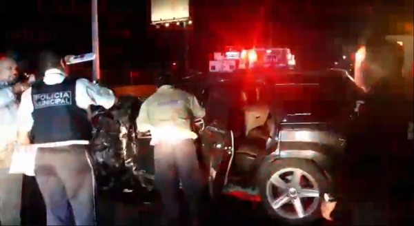 La noche de este jueves Se registró un accidente automovilístico luego de qué lujosa camioneta chocó sobre carriles centrales de la Avenida Salvador Nava, a la altura del puente de 5 de Mayo.