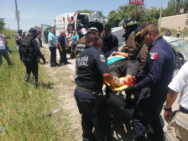 Por lo que acudieron al auxilio Bomberos y paramédicos de la Cruz Roja, y usando las "quijadas de la vida", rescataron a la mujer, quien se encuentra grave. También llegaron al apoco oficiales de Seguridad Pública y Tránsito Municipal.