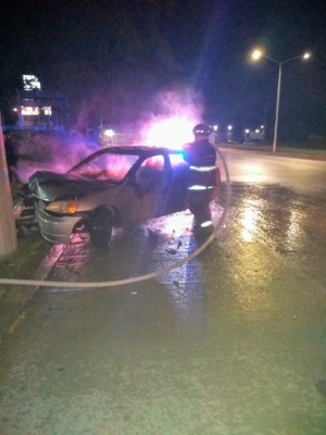 Y debido al fuerte impacto, el coche empezó a incendiarse, pero los ocupantes ya lo habían abandonado.