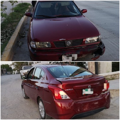 El conductor de un automóvil marca Nissan Tsuru color guinda, chocó contra un Nissan Versa del mismo color, en el bulevar México-Laredo, frente a la secundaria Dunstano Gómez Castillo.