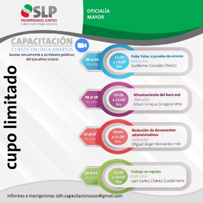 Como parte del Programa Anual de Capacitación 2020 que emprendió la Oficialía Mayor a través de la Dirección de Desarrollo Humano, la titular de la dependencia, Ada Amelia Andrade Contreras informó que, durante julio se realizan cuatro cursos en línea dirigidos a trabajadores de distintas dependencias de la administración estatal.