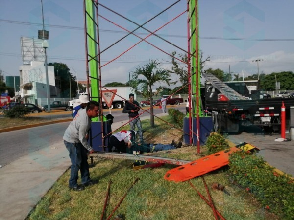 Este viernes por la mañana los socorristas de la Cruz Roja auxiliaron a un hombre que se cayó de un andamio, en la gasolinera que se ubica en la Intersección de los Bulevares.