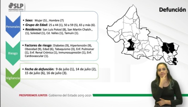 Los 225 nuevos casos están en el rango de 2 a 95 años de edad, y se consideran casos adquiridos en transmisión local. Los 12 lamentables decesos son de residencia en la capital (8), San Martín, Soledad, Ciudad Valles y Tamazunchale.