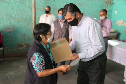 Más de 60 familias de la colonia Las Pilitas recibieron apoyos alimentarios como parte de la campaña "Por Una Alimentación Sana Variada y Suficiente" en apoyo a la contingencia sanitaria, así como paquetes para bebé y ayudas funcionales para personas adultas mayores.