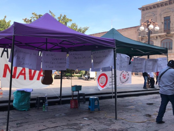Con ollas y puestos, se instalaron en la entrada del recinto municipal para insistir con el cese de la titular del Centro Histórico, Rocío Zavala García.