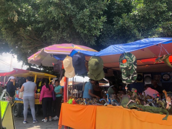 Durante la caminata se detectó que no existe una sana distancia delimitada en los puestos, además de que había población en riesgo entre niños, adultos mayores y hasta embarazadas que circulaban sin temor al contagio.