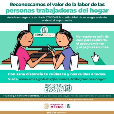 La Oficina de Representación del IMSS en San Luis Potosí dio a conocer que, ante el regreso a la "Nueva Normalidad", y con el objetivo de garantizar su acceso a la seguridad social, la incorporación de las personas trabajadoras del hogar se puede realizar vía remota, a través de la página de internet del Instituto en http://www.imss.gob.mx/personas-trabajadoras-hogaro mediante la aplicación IMSS Digital.