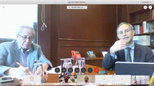 El Secretario de Salud, Jorge Alcocer Varela y el Subsecretario de Prevención y Promoción de la Salud, Hugo López-Gatell Ramírez, presentaron ante el Presidente de la Conferencia Nacional de Gobernadores (Conago) y Gobernador de San Luis Potosí, Juan Manuel Carreras López, así como ante el Coordinador de la Comisión de Salud de ese organismo, Mauricio Vila Dosal, la propuesta de lineamientos para la metodología de cálculo de semáforo de riesgo epidémico Covid-19.