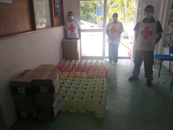 Un lote de equipo de protección que contiene guantes, cubre bocas y trajes, además de material de limpieza como jabón, cloro, limpiador multiusos y gel antibacterial, fue donado a la Cruz Roja, Delegación Tamuín para uso de su personal.