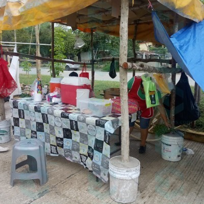 La Sra. Francisca Félix Dorado, quien ha permanecido ahí desde que se dispuso su instalación por las autoridades, ofrece gorditas, café con pan, agua, tamales, vende poco, pero si termina sus productos.