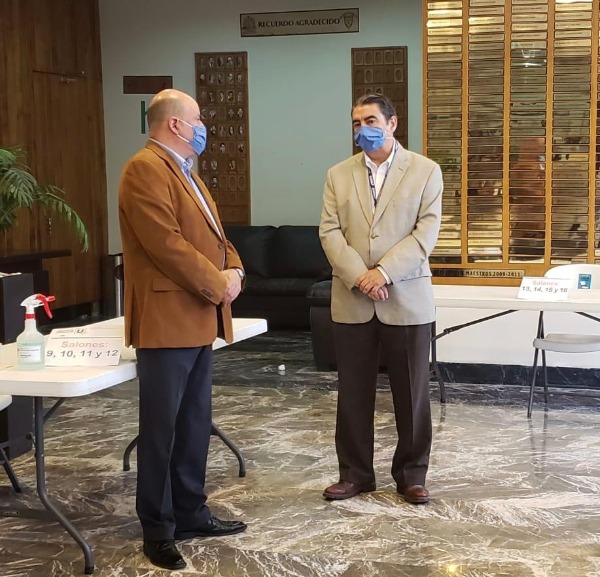 Durante un recorrido por la Facultad de Derecho en compañía del Rector Alejandro Zermeño Guerra, señaló que era muy importante realizar la aplicación del examen, debido a que da certidumbre a los estudiantes, "por eso era tan importante que el examen se realizara, todo adecuado a las condiciones sanitarias necesarias".