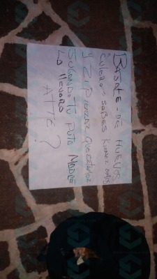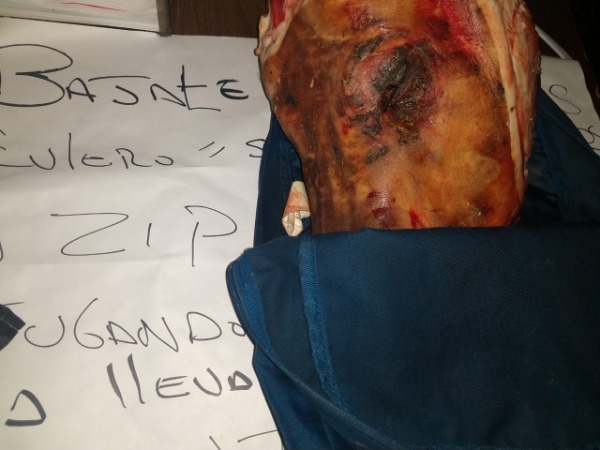 Esta mañana, fue localizada una cabeza de puerco acompañada de una cartulina donde se leía una amenaza contra un sujeto desconocido, lo que ha causado temor entre los habitantes.
