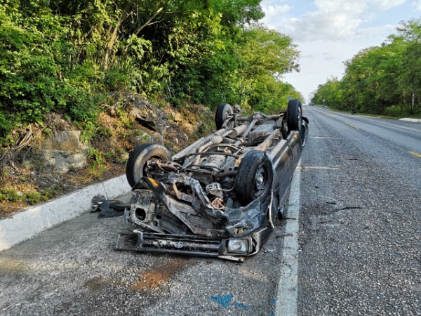 Esta tarde se registró la volcadura de una camioneta marca Toyota color gris, de modelo atrasado, en el kilómetro 357 de la carretera federal Valles-Tamazunchale.