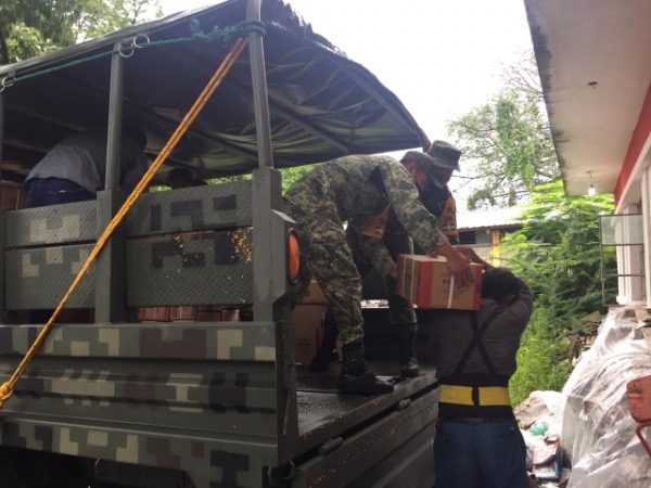 Esta mañana, vehículos de la Sedena hicieron la entrega del material didáctico para los niveles de educación preescolar, primaria, secundaria y educación indígena