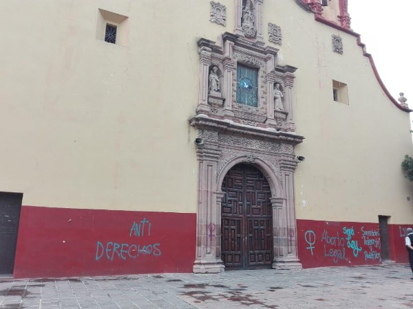 La mañana de este jueves templos y algunas vías del Centro Histórico de la capital aparecieron con pintas alusivas a la legalización del aborto.