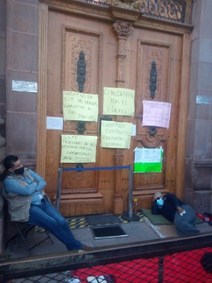 Agregó que ya fueron intimidados hasta con policías antimotines en un edificio público como lo es el Palacio de Gobierno Estatal, "y máxime cuando las manifestaciones son pacíficas".