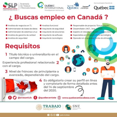 Al respecto de la bolsa de trabajo en el país canadiense, Lozano Nieto estableció que se deriva de un convenio con la ciudad de Québec, el Servicio Nacional de Empleo y Quebec International Développment Écconomique, que abre la posibilidad para profesionistas con carrera técnica o título universitario para encontrar empleo en diversas áreas de especialidad.