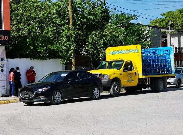 Una camioneta marca Ford color amarillo, de doble robada, usada para el reparto de agua purificada, chocó contra un vehículo marca Mazda color negro.