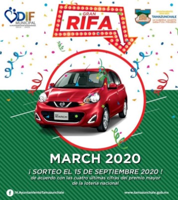 Después de proponer la rifa de un carro de la marca Nissan, será el proximo 15 de septiembre del presente año, que está se llevará a cabo en base a las cuatro ultimas cifras de la lotería nacional, así lo dio a conocer la presidenta del DIF Municipal, de Laura Zulema Sánchez Romero.