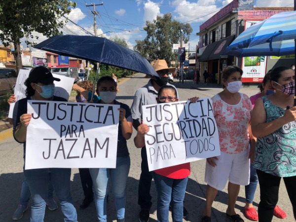 Entre las consignas escritas en cartulinas y pancartas que señalaban: "Queremos justicia y seguridad" y "Justicia para Jazam", señalaron que "ya no solo la roban, sino que le quitan la vida a la gente".