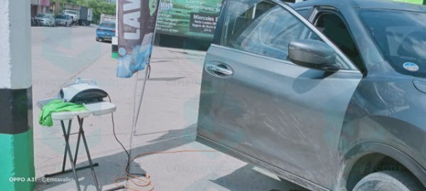 El propietario del lugar, el empresario Vallense Carlos Nájera, indicó que son 50 las sanitizaciones que obsequian a partir de hoy a autos, camiones, camionetas o cualquier tipo de vehículos, un proceso que tarda de 3 a 5 minutos, no es con cualquier líquido, sino que es un tipo de espuma a base de dióxido de cloro y ozono que no daña las vestiduras de los vehículos ni a las personas, además que su efecto prevalece por 7 días.