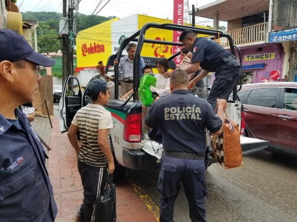 En patrullas trasladan a ciudadanos afectados, entre ellos niños y abuelitos a la parte alta de la avenida Juárez
