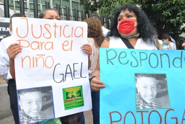 Familiares de Gael, el pequeño que perdió la vida luego de ser atropellado por una pipa de gas en Valle Dorado, se manifestaron afuera de la Fiscalía General del Estado para exigir justicia.