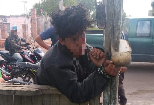 Amarraron al joven a una especie de poste de madera