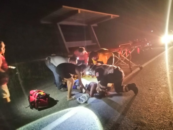 En la motocicleta, viajaban un hombre y una mujer embarazada que de nombre Jaqueline Claudia "N", con domicilio en la calle Ixtapa del fraccionamiento Villas del Sol, ambos resultaron con lesiones de gravedad y fueron atendidos por socorristas de la Cruz Roja, quienes los llevaron a un hospital.