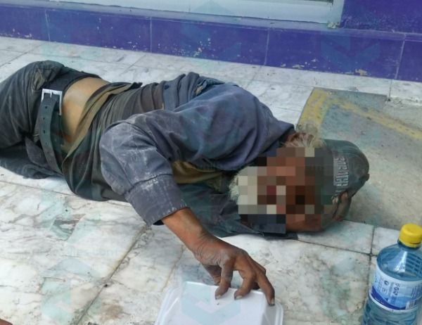 Taxistas y empleados de varios comercios de la zona centro reportaron está mañana que hay un indigente de la tercera edad en condiciones deplorables, presumen que está enfermo y que es probable que sí tenga familia.