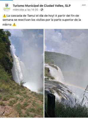 A pesar de que en la página de la Secretaria de Turismo en el Estado, aparece el paraje Tamul, entre otros con el estatus sin acceso, la Dirección Municipal de Turismo en Ciudad Valles lo está promoviendo, al asegurar que a partir de este fin de semana, ya están permitidas las visitas a la parte alta de la cascada.