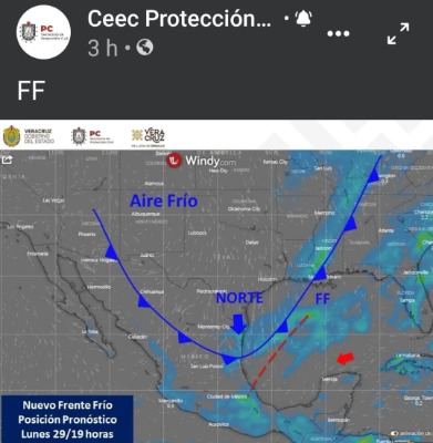 El Sistema Meteorológico Nacional (SMN), informó que a raíz del Frente Frío número 4 provocará Norte violento para costas y montañas de Veracruz durante el día martes 29 de septiembre.