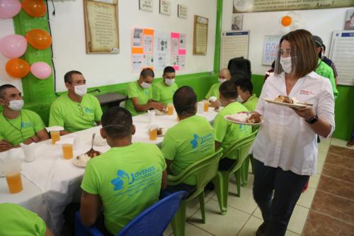 Posteriormente Lorena Valle Rodríguez, visitó el espacio alimentarios Jóvenes Rioverde A.C., en donde se brinda atención para rehabilitación de adicciones a personas de Rioverde y Ciudad Fernández. El DIF Estatal entregó el equipamiento para el funcionamiento del espacio y brinda apoyos alimentarios mensuales. Debido a las características de la población que atienden, el servicio con los tres alimentos al día, se ha mantenido durante la contingencia de salud.