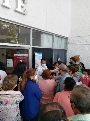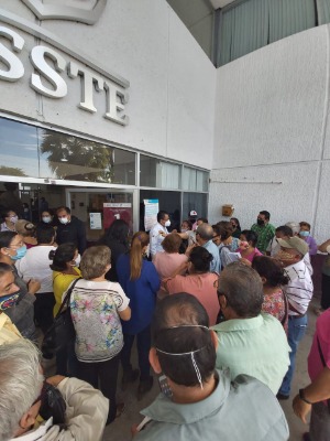 Una aglomeración de personas se registra esta mañana afuera de las instalaciones de la clínica hospital del ISSSTE, debido a que decenas de personas demandan atención médica, sin embargo, las citas programadas fueron suspendidas, solo se aceptará a los derechohabientes que llegaron temprano a formarse para que alcancen cita para medicamento.